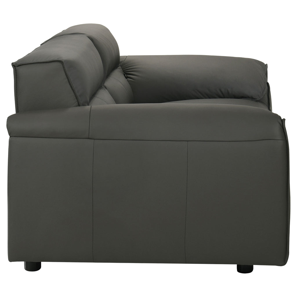 This leather-upholstered loveseat offers a perfect balance of sculptural simplicity and everyday luxury. Wrapped in 100% genuine top grain leather, it showcases smooth tailoring and a bold, low-profile silhouette. Wide, gently sloped arms and deep seats create an inviting feel, while high-density full foam cushions and a sinuous spring foundation provide lasting support. With its grounded form and refined materials, this piece brings quiet sophistication to any modern space. Key Features: • Loveseat upholstered in 100% top grain leather for a soft, luxurious hand and long-term durability • Low-profile frame with wide, sculpted arms creates a relaxed yet structured silhouette • High-density full foam seating offers plush comfort with excellent shape retention • Sinuous spring support system enhances flexibility and long-lasting resilience • Orange leather finish delivers bold contrast and timeless modern style • Perfectly scaled for pairing or standalone use in sophisticated living spaces