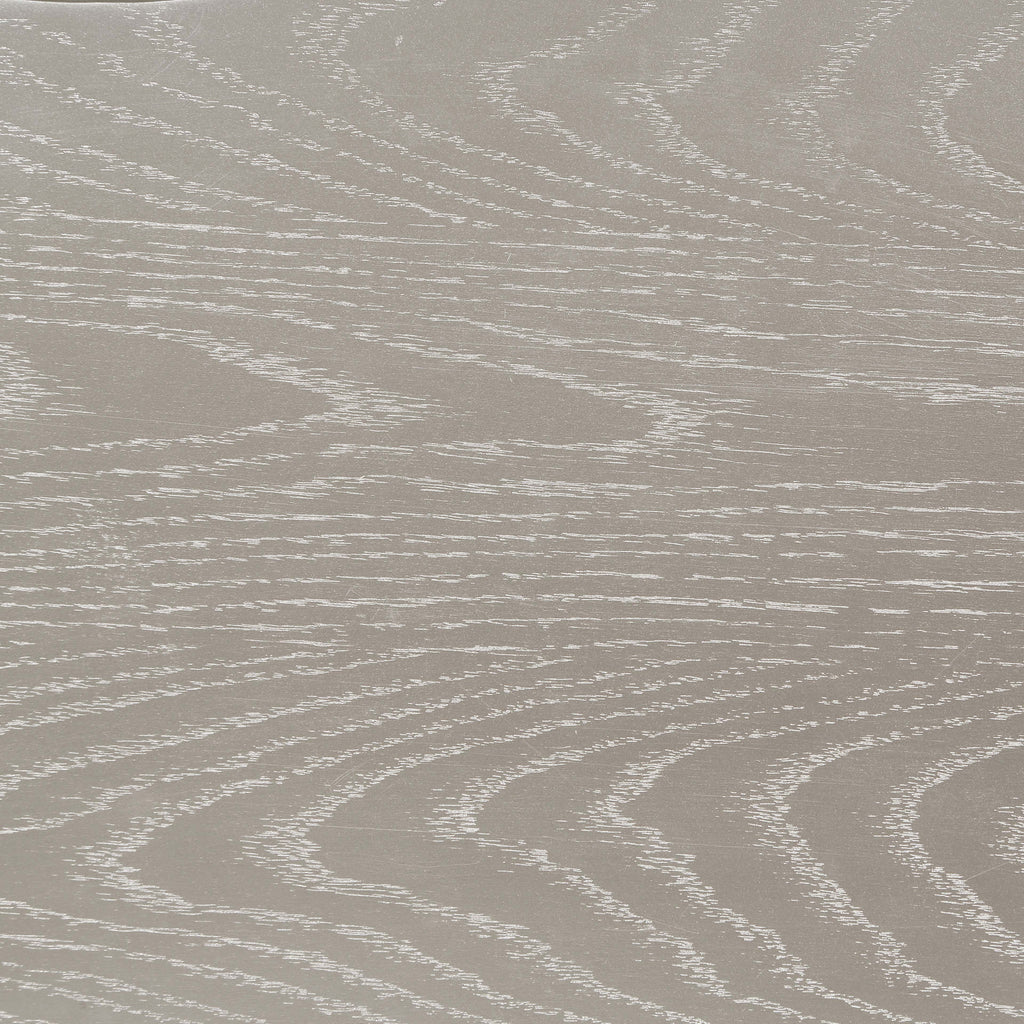 Elevate your restful bedroom retreat with this elegant, glam platform bed. A curvy double arch headboard and footboard are designed with a padded insert of flared channel tufting that lends an eye-catching motif. Each padded piece is upholstered in a soft, ivory fabric that lends a neutral color palette. A silver oak finished frame gives off a chic pearlescent look and feel, accented by glittering panels that rest flush between the crown molding and trim details throughout. Slender, tapered legs offer a subtle lift, allowing for extra storage beneath. Key Features: • Double arch head and footboards feature ivory fabric upholstery with foam padding • Glittering accent panels bring sparkling sophistication to any bedroom • Silver oak finish is elegant and modern, delivering a glam finishing touch • Elegant trim details and channel tufting emphasize graceful curves • Complete with wide rails and tapering legs for a sleek stance