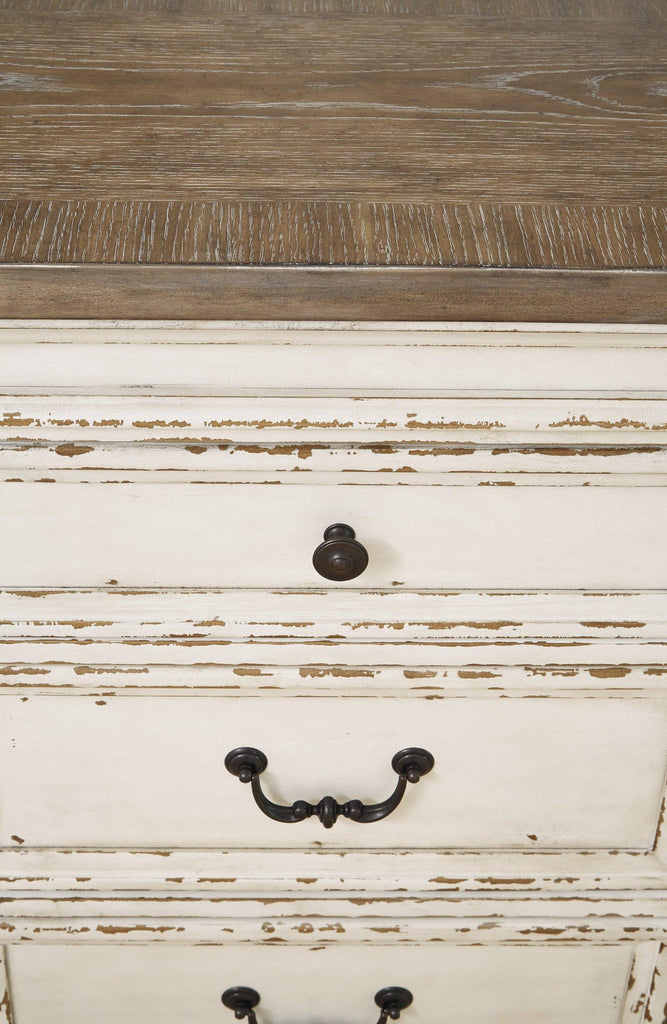 Bon appétit. This dining room set has all the right ingredients for a French country-inspired feast for the eyes. Drop-in leaf allows you to transform the intimate square dining table into a gracious extension table that comfortably seats eight. Antiqued two-tone aesthetic pairs chipped white with a distressed wood finished top for a double serving of charm. With its rounded ladderback styling and plushly cushioned seat, this dining room chair is sure to entice you to linger a little longer.