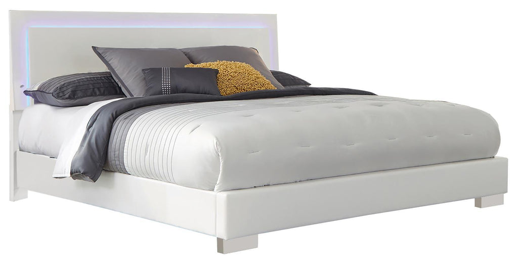 Felicity Panel Bed with LED Lighting Glossy White
