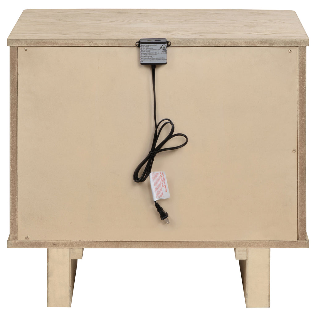 This nightstand combines practicality with elegant design, offering two drawers for convenient bedside storage. Finished in beige oak, it features smooth metal extension glides for easy access and antique brass hardware for a touch of vintage charm. The integrated USB and Type-C charging ports keep your devices powered and within reach. Its clean lines and thoughtful details make this nightstand a perfect fit for any bedroom setting. Enjoy the perfect balance of function and style with this essential piece.