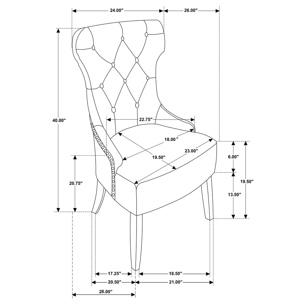 Create an exceptional, inviting dining room space with a modern button tufted dining chair. It pairs a classic wingback profile with a gentle curvature, offering impeccable comfort and chic style. Its plush back and seat feature foam cushioning with soft upholstery, delivering indulgent seating experiences to all who dine at your table. The back of the chair includes nailhead trim that adds a dimensional finishing touch. Black finish legs complete the look with austerity and excellent support.