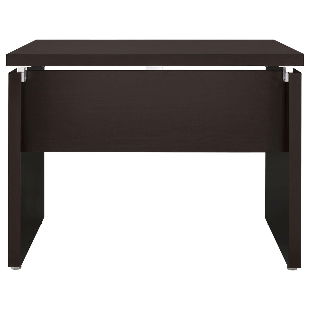 Outfit your home or professional workspace with the ease and convenience of a spacious L-shaped desk and filing cabinet. Designed to make a stylish focal point, the set features a deep cappuccino finish augmented with silver-toned hardware, creating depth and dimension while offering modern flair to clean lines that facilitate productivity. The large desktop is complemented with a keyboard tray that adds ergonomic appeal for computer work and is roomy enough for a multiple monitor set-up. The set includes a mobile filing cabinet complete with casters, including one under the file drawer that assures smooth movement while providing additional support. Above the file drawer, two accessory drawers add a perfect spot to organize essentials like pens, notepads and charging cords to maintain a tidy and organized workspace each day. Key Features: • Spacious L-shaped desk and filing cabinet for home or professional workspace • Deep cappuccino finish with silver-toned hardware for stylish focal point and modern flair • Keyboard tray for ergonomic computer work and roomy enough for multiple monitor set-up • Mobile filing cabinet with casters, including one under the file drawer for smooth movement and additional support • Two accessory drawers to organize essentials like pens, notepads and charging cords