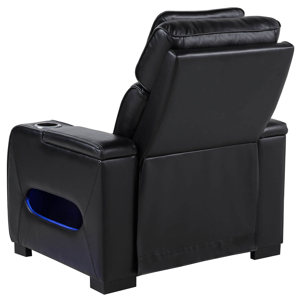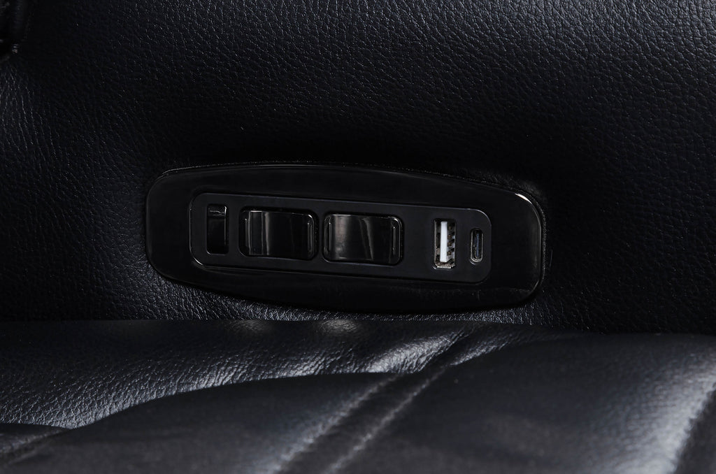 Designed for immersive relaxation, this dual power reclining set combines bold styling with high-tech comfort. Power recline and adjustable power headrests offer personalized positioning, while integrated control panels include USB-A, USB-C, and a home button for effortless use. Blue LED under glow casts a modern glow beneath each piece. With built-in cup holders, storage, and tech-forward features like a Bluetooth speaker and charging console, this set redefines luxury lounging. Key Features: • Dual power reclining sofa set in black faux leather includes power headrests and smooth recline • Each piece features side panels with USB-A, USB-C, and home button functionality • Blue LED under glow adds bold ambiance to the base of each reclining seat • Cup holders built into armrests offer added convenience across all seating pieces • Sofa includes drop-down console with AC outlets, USB ports, and reading lights • Loveseat includes center console with lift-top storage and built-in Bluetooth speaker