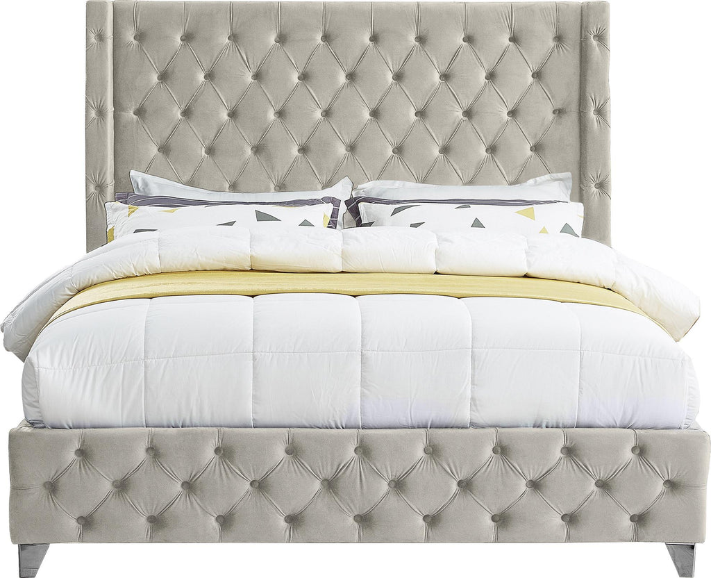 Savan Cream Velvet Full Bed