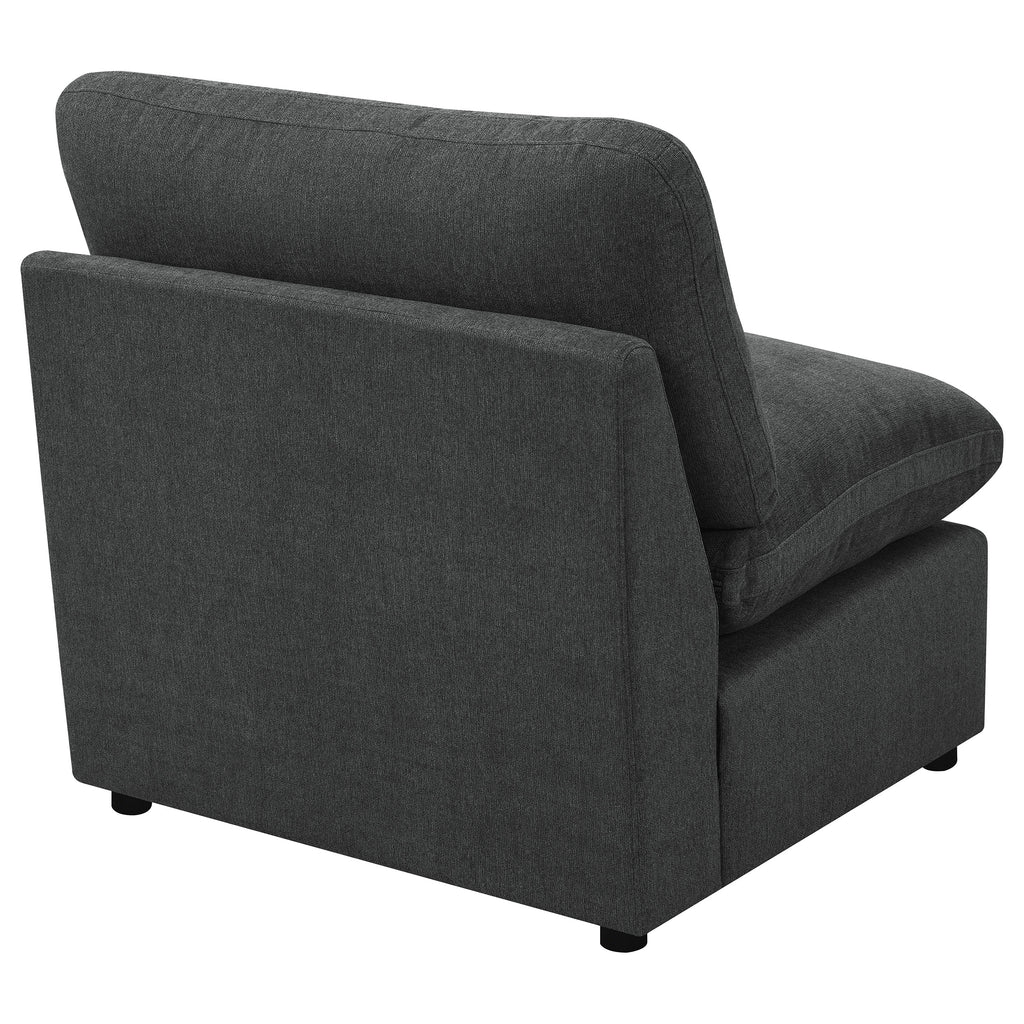 Add versatility to your modular sectional with the armless chair, designed to seamlessly blend with your existing furniture. This chair features a sleek, modern design and premium down-like filled cushions for exceptional comfort. Perfect for creating additional seating without taking up too much space.