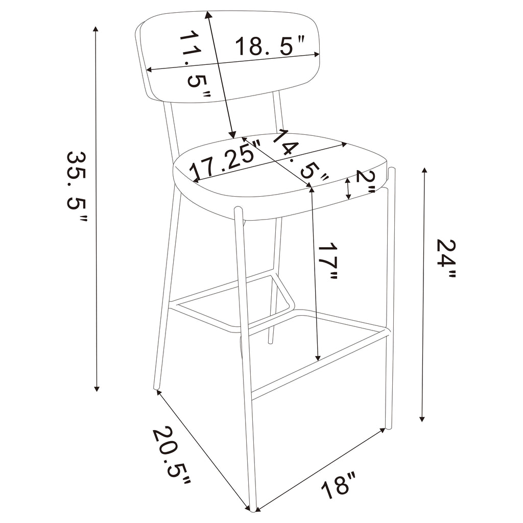 Introduce comfort and style with a set of two contemporary counter stools for your kitchen. Each features a black finish metal frame, offering streamlined character with slim structure and geometric details. Light, neutral upholstery covers foam cushions, creating excellent comfort for everything from meals with the family to cocktails with friends. Each stool features a built-in footrest for added support. Curved backrests add a dark oak finish panel, delivering the perfect hint of dimension and texture.