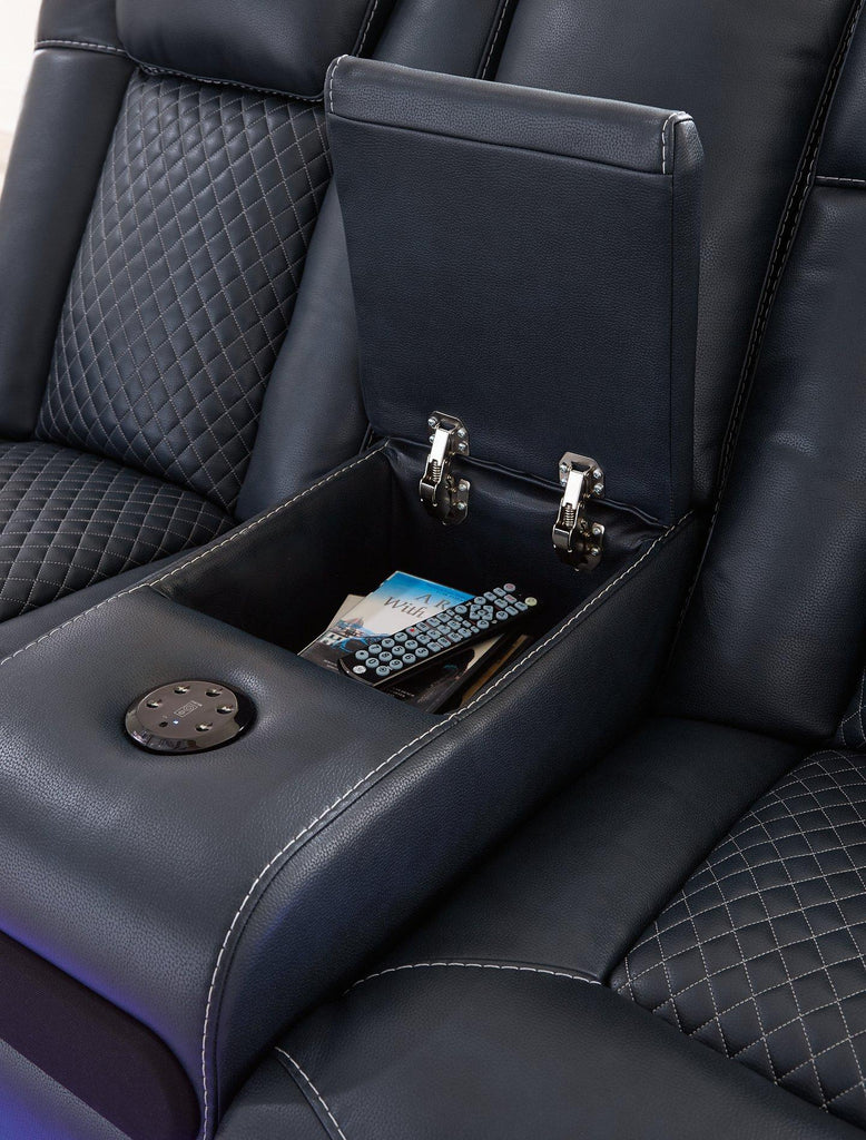 This power reclining loveseat goes beyond basic comfort. It upgrades the everyday, turning your living room into an entertainment hub. Don’t want to leave your seat? Keep essentials in reach with cup holders and storage arms. You can create an even cooler vibe for family movie nights and friendly gaming matches with LED lights. Immerse yourself further with built-in wireless audio connectivity. And your sleek style isn’t compromised—its diamond stitching and streamlined arms recall the aesthetics of luxury automobiles.