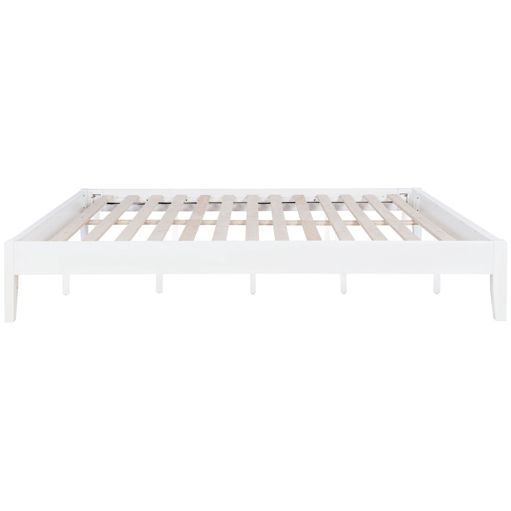 Designed for versatility, this universal platform bed offers a sturdy foundation with a fully slatted, mattress-ready design. Crafted from durable rubberwood and pine, it ensures lasting support and stability. Pre-drilled holes on the back legs allow for effortless headboard attachment, providing customization options to suit various bedroom styles. With its clean lines and solid construction, this bed serves as a functional and stylish base for any sleep space.