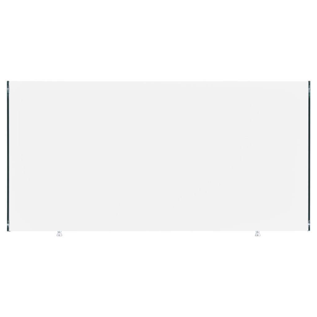 With its cool, contemporary appeal, this versatile writing desk works well in a bedroom or living room. It creates a functional space to work and study without sacrificing style. Bold, thick, tempered glass panels form its base supports, giving it an inspired touch of glamour. Its striking aesthetic is brought to life with a finish of glossy white. This desk is complete with an open center compartment and two drawers, adding extra convenience while maintaining its sleek look. Key Features: • Contemporary writing desk with clear glass side panels and white top • Two drawers and one center cubby provide storage and function • High gloss engineered wood top adds a polished modern appearance • Tempered glass legs give the desk a floating visual effect • Sleek chrome-finished knobs complement the clean white design • Ideal for minimalist bedrooms, living rooms, or compact offices