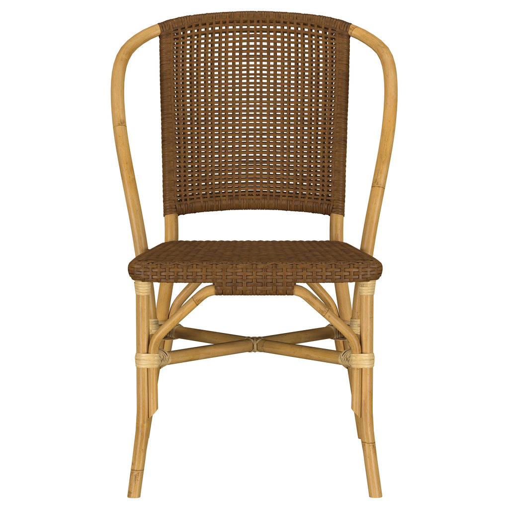 Natural texture and timeless craftsmanship come together in this artisan-inspired side chair. A gently curved rattan frame offers organic beauty and lightweight strength, while woven rattan webbing across the seat and back adds dimension and breathability. Finished in a warm brown tone that highlights each handcrafted detail, this chair brings a relaxed, sun-washed elegance to dining spaces, patios, or casual indoor settings. Key Features: • Side chair features a handcrafted rattan frame with woven seat and back detailing • Curved backrest and rounded edges create a soft, welcoming silhouette • Woven rattan webbing adds breathable comfort and artisanal texture • Natural brown finish enhances the grain and tone of the rattan throughout • Lightweight yet sturdy design is ideal for flexible or casual seating arrangements • Perfect for coastal, tropical, or laid-back transitional dining environments