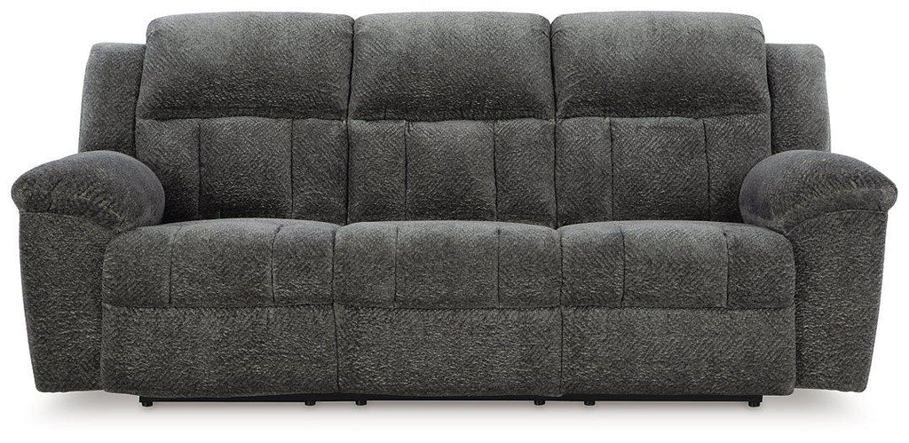 With its clean-lined look and modern attitude, this bedroom package is a fresh style awakening. A warm charcoal hue over replicated oak grain easily complements other furniture finishes. Smooth drawer fronts with antiqued pewter-tone handles complete the aesthetic.