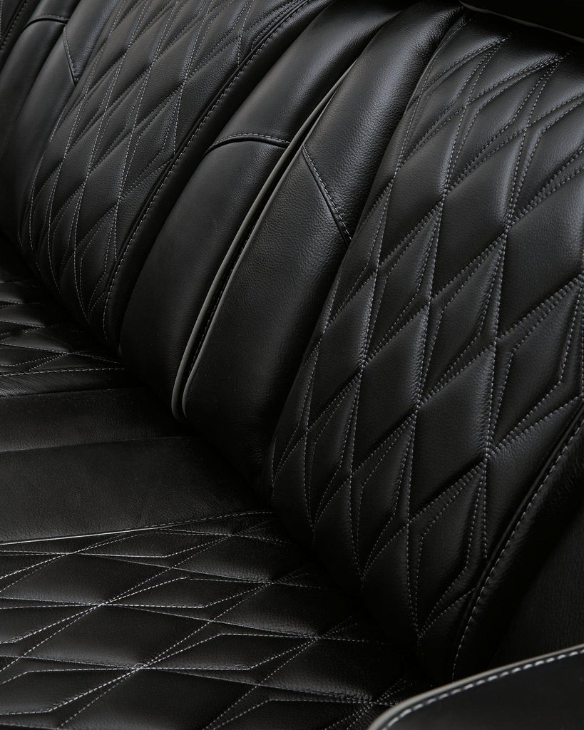 Ready to take your reclining experience to the next level? Then sit up and take notice. With this power reclining sofa, ultimate relaxation is at your fingertips. Experience the pure bliss of an air massage system and heated seats at the touch of a button. The center seat is crafted with a drop-down table with wireless charging and dual cup holders. Plus the luxurious diamond-stitched upholstery is easy on the eyes, adding elegance to any space.
