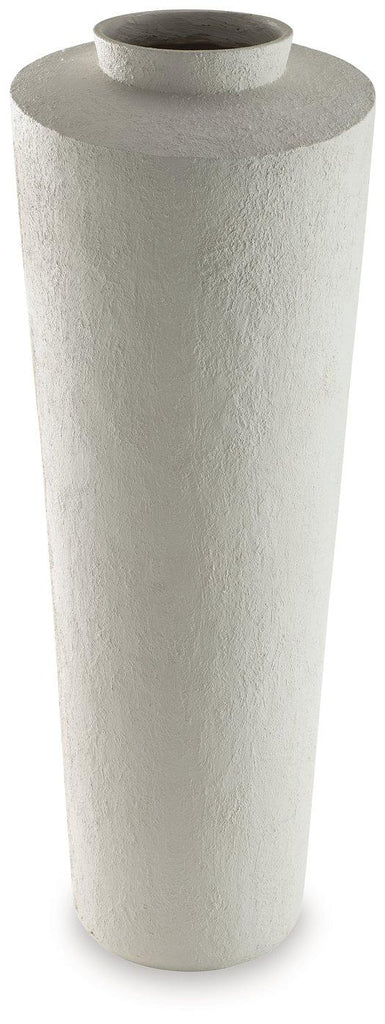 Simply chic. With its textured pattern and asymmetrical top, this cream-colored floor vase is a subtly stylish addition to your decor. Refresh the look by switching out your favorite faux floral arrangements from season to season.
