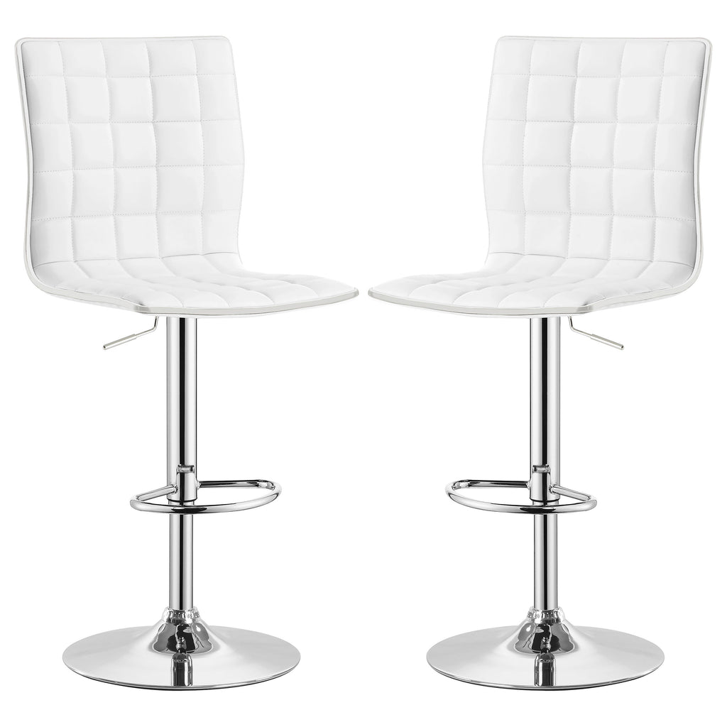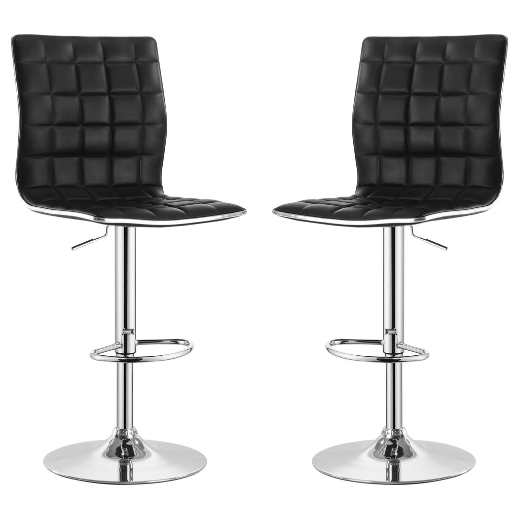 Intersecting vertical and horizontal stitching creates appealing waffle texture on this contemporary adjustable barstool. Easily rising and lowering to meet your special needs, this stool offers a modern silhouette with comfortable and supportive seating. Upholstered in black leather-look fabric, chrome accents add gleaming flair. A pedestal base with a round foot delivers a familiar but stylish profile. A built-in footrest encourages friends and family to linger over a great drink or delicious dessert. Key Features: • Intersecting vertical and horizontal stitching creates appealing waffle texture on this adjustable barstool with modern silhouette and comfortable seating • Upholstered in black leather-look fabric, chrome accents add gleaming flair to pedestal base with round foot • Easily rising and lowering to meet your special needs, built-in footrest encourages friends and family to linger • Chrome accents add gleaming flair to modern silhouette with comfortable and supportive seating • Pedestal base with round foot delivers a familiar but stylish profile
