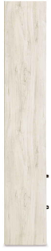 - Antiqued white finish over replicated oak grain