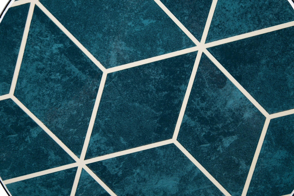 This accent table set enamors all with its striking style. The mesmerizing diamond pattern top graces your space with a splash of geometric design and a dashing two-tone teal glaze. Dazzle guests by making it a resting place for cocktails and hors d'oeuvres at parties—or keep this piece all to yourself as a bedside table for books and other baubles.