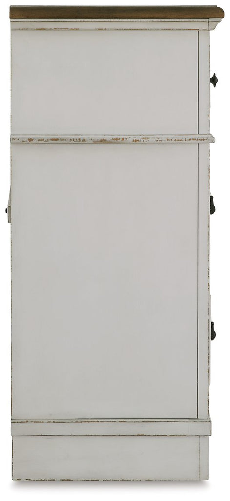 Traditional design. Casual appeal. You can have it all with this dresser. A relaxed two-tone aesthetic merges with ornate profiled drawer fronts and pilasters to give the distinctive piece an allure all its own. Expansive drawers with quality dovetail construction and dark bronze-tone hardware reflect attention to detail from the inside out.